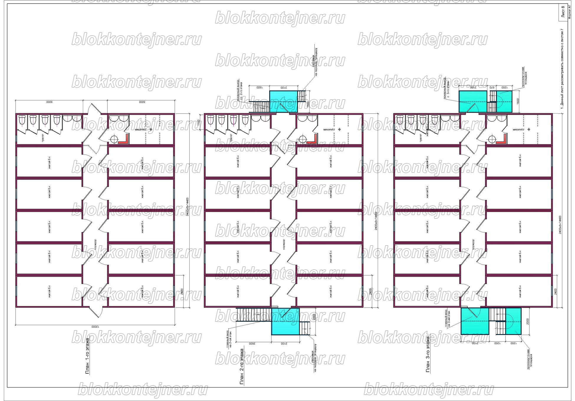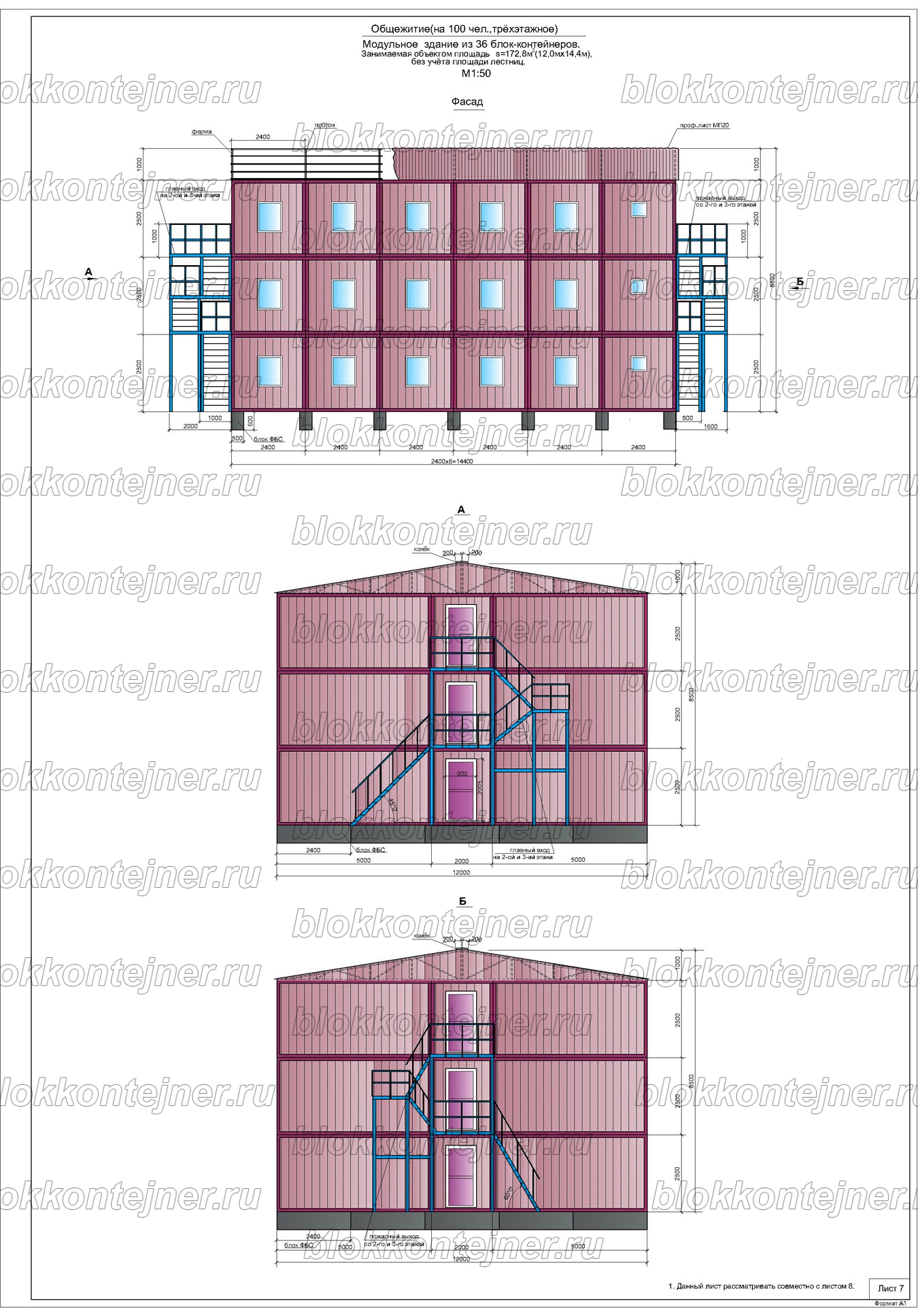 Трехэтажное общежитие из 36 БК на 100 человек